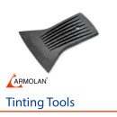 Werkzeug zum einfachen Schneiden entlang des Rakels, die Sonnenschutz- und Fensterfolien können mit dem 5 Wege Werkzeug an die Kanten und die Ecken gedrückt werden, die graue Rakel ist aus weichem und biegsamen Kunststoff